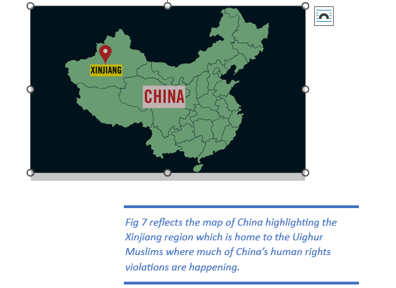 Fig 7 – Map of China highlighting Xinjiang region.