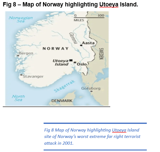 Since 2001 Norway has suffered from multiple Muslim and far-right extremist attacks the mostly deadly event as reported by the BBC (2012) caused “seventy-seven deaths by shooting” in 2011 by a far-right extremist.