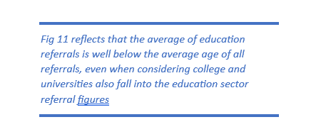As such the overall referral system needs urgent reform breaking the referrals down clearer by age, and adjusting a one fit all approach to a sector which refers students from ages 3-18 years old on the same risk factors.