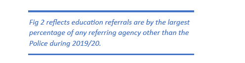 Even when education settings are compared against the Police schools and colleges consistently record the highest referral rates for the period between 2015/16-2019/20.
